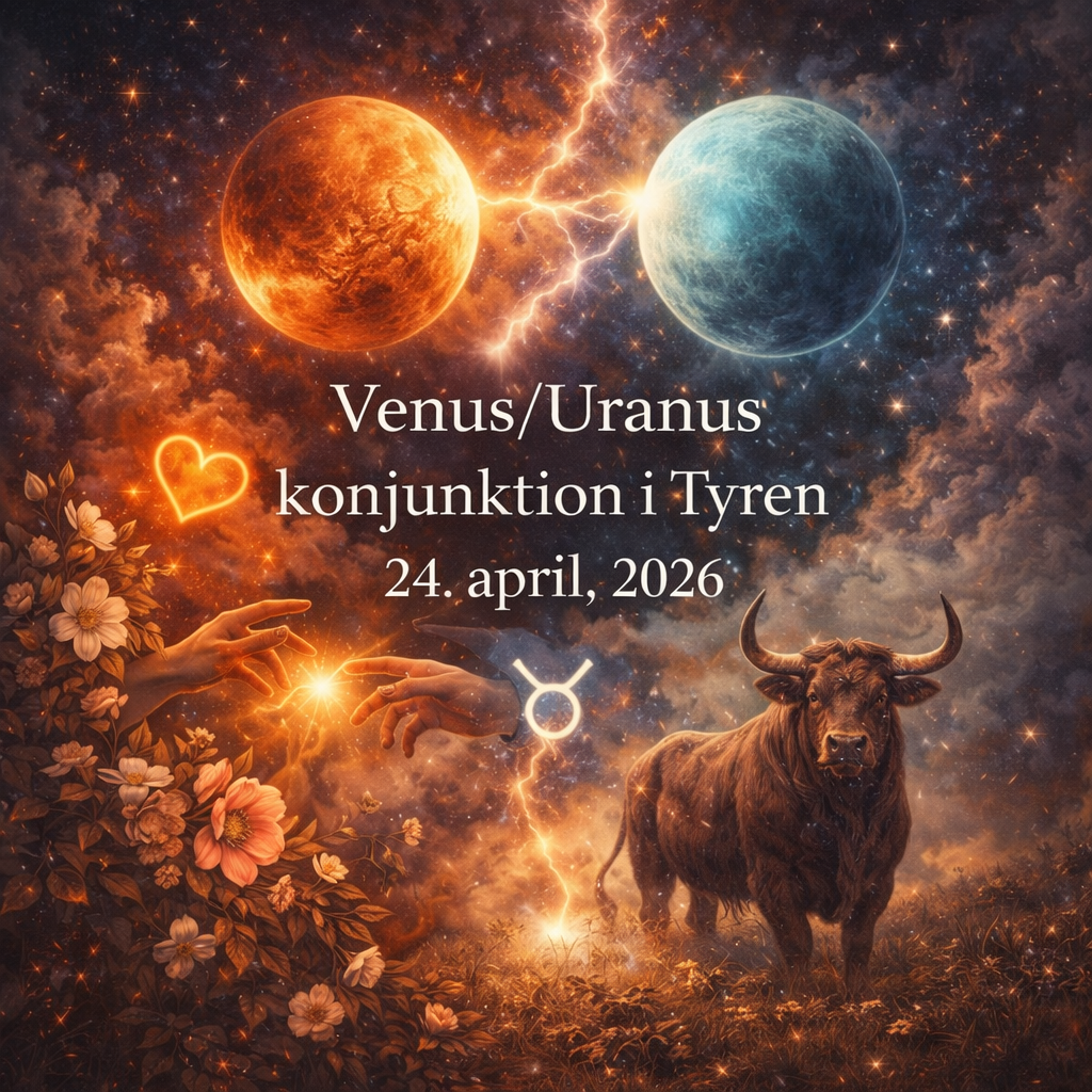 Venus handler om kærlighed, relationer, værdier og det, vi bliver tiltrukket af. Det er den måde, vi forbinder os med andre på, men også den måde, vi mærker, hvad vi holder af, og hvad der føles rart og trygt for os. Uranus er noget helt andet. Det er forandring, det uventede, det der bryder med det, vi plejer at gøre, og det der kan komme lidt pludseligt og vende tingene på hovedet. Når de to energier mødes, så opstår der et felt, hvor noget kan ændre sig, og hvor man kan få øje på noget på en ny måde.